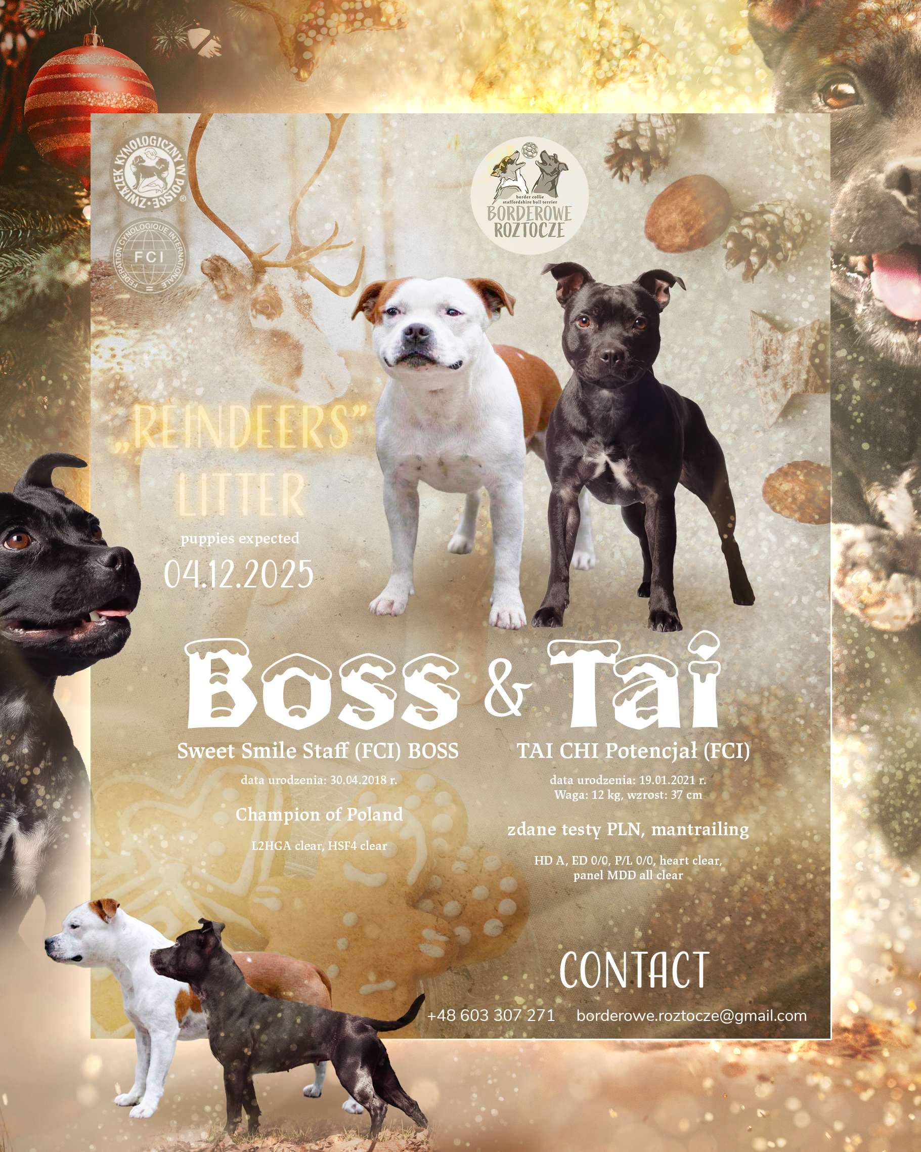 W dniu 03 grudnia 2025 roku na świat przyszedł miot Staffordshire Bull Terrier po naszej TAI CHI Potencjał "Tai" i Sweet Smile Staff (FCI) BOSS.